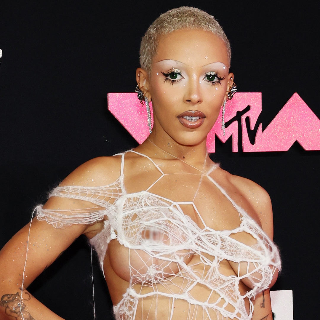 It's safe to assume Doja's spine-chilling getup is a nod to her Scarlet album cover artwork, which features a white background with two intertwined eight-legged creatures with pearl-embellished backs.