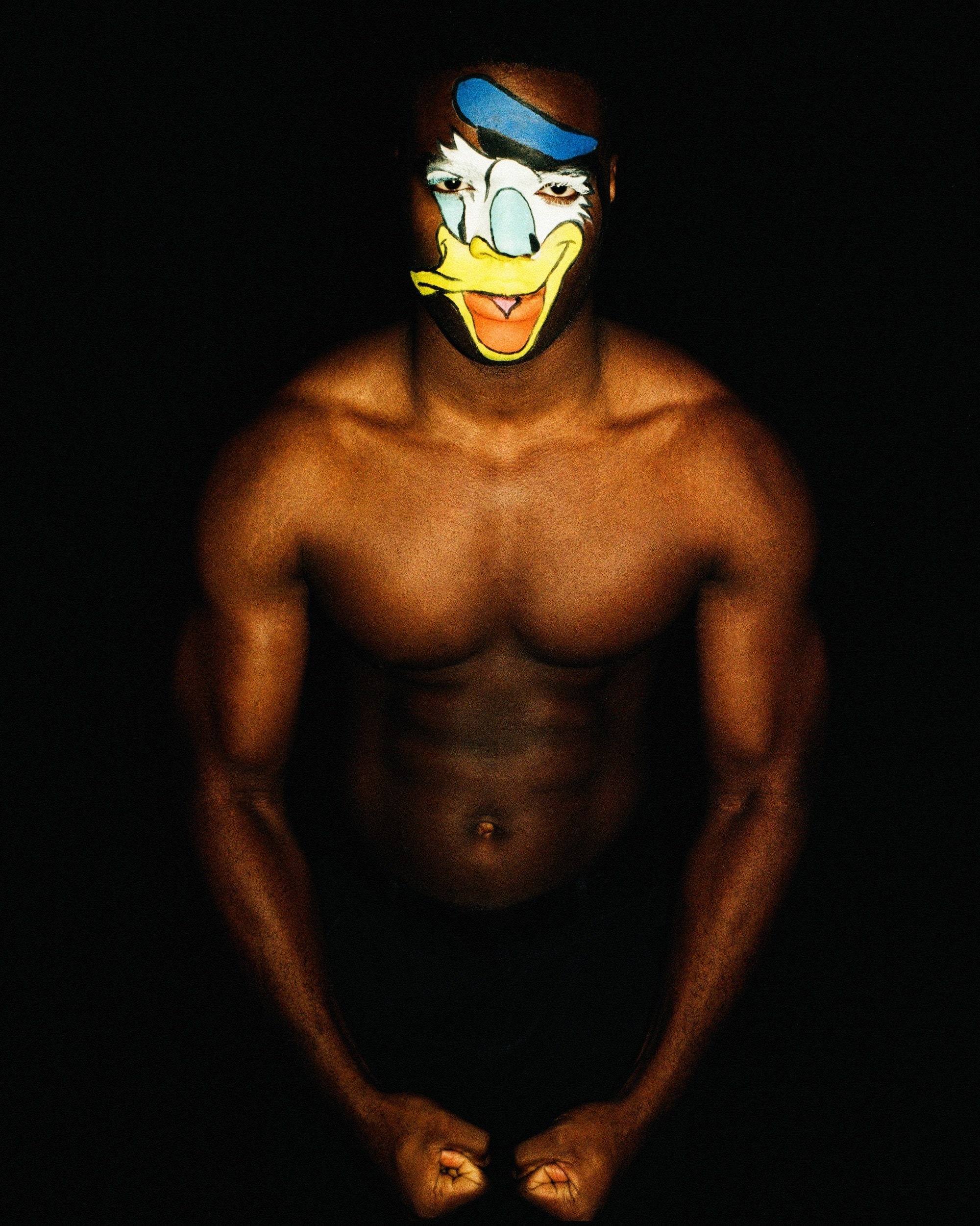 “The fashion and beauty industry can sometimes be too serious and that’s not for me. I like it when it’s cute, funny and a bit creepy,” says Janina Zais, hair stylist, make-up artist and body painter. Those are the perfect words to describe Zais’s new shoot with photographer Peter Kaaden, which sees her paint classic Disney characters onto the faces of topless men. While the lighting may be moody, and the setting somewhat sinister (it was shot in Kaaden’s garage in Berlin), ultimately the sight of Goofy and Donald Duck means you have to laugh. “Don’t take life too seriously,” says Zais. “The most important message is to smile.”